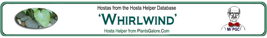 | 'Whirlwind Streak' | Sport | 'Whirlwind' | - | Anderson, Jim | (GENETIC BACKGROUND) 'Fortunei', 'Fortunei Hyacinthina', 'Whirlwind' ++(INFO.SOURCE: MyHosta Database) |