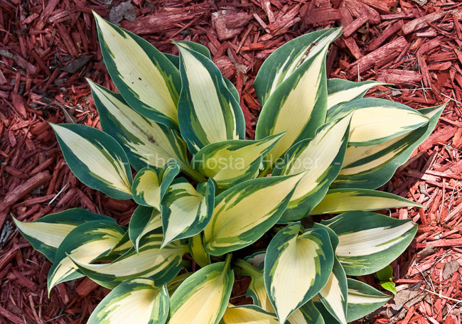 This sport of H. 'Halcyon' is a tetraploid hosta originated by Gerardus Heemskerk of Heemskerk Vaste Planten in the Netherlands and introduced by Darwin Perennials of Illinois. This non-registered hosta grows into a medium size plant about 12 inches high by around 16 inches wide. It bears medium lavender flowers and thick substance.