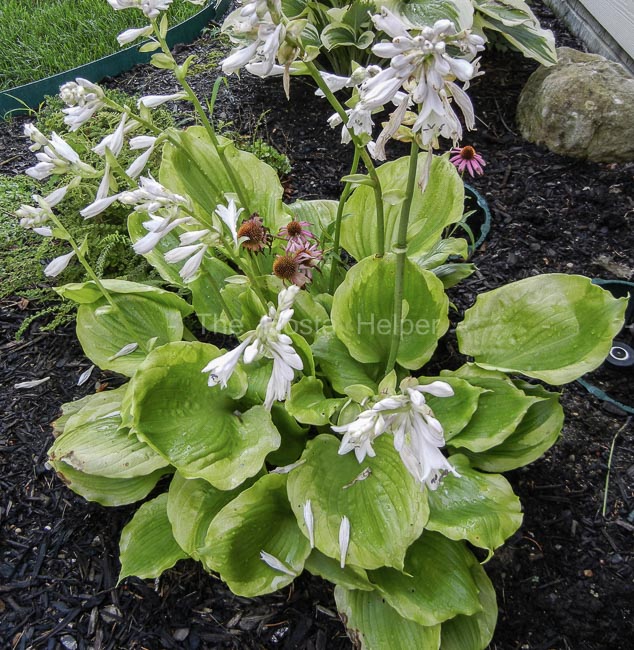 and Substance' has wavy, cupped leaves and wide yellow margins. It
