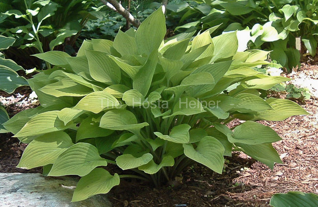 The New Encyclopedia of Hostas by Diana Grenfell (2009) states: "A superb hosta...Considerably smaller than its parent and a much brighter color."