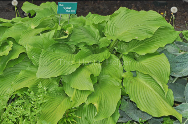 This H. fluctuans seedling was registered by Peter Ruh of Ohio in 2000. This large size mound of foliage with very wavy margins grows 30 inches tall and 55 inches wide. The leaves are shiny on top and of greater than average substance. It bears lavender flowers starting in late July.
