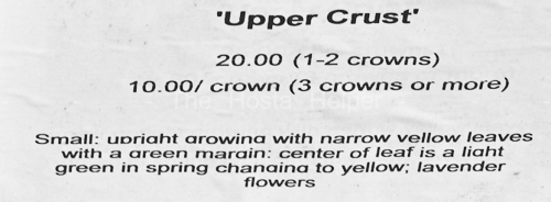 Mark Zilis of Illinois registered this tissue culture sport of H. 'Snow Crust' in 2004. It forms a medium size mound about 14 inches high by 33 inches wide. The foliage is ovate, slightly wavy and has average substance. Its pale lavender flowers bloom in July.