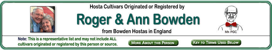 | 'Devon Dream' | Small | Blue/Green | | | Sport | Med-Lavender | July to August | Bowden, Roger & Bowden, Ann | --NR-- |
