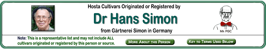 | 'Woge' | Large | Blue/Green | | | Sport | Near-White | July to August | Simon, Dr Hans | --NR-- |