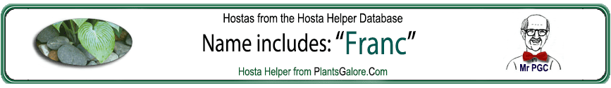 | 'Franc's Mor Blu' | Medium | Blue/Green | | | Unknown | Unknown | June to July | Freeman, Franc & Freeman, Sally | .2010 |