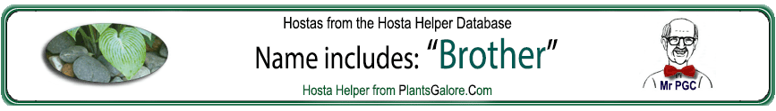 | 'Brother Ronald' | Medium | Blue/Green | | | Unknown | Pure-White | July to August | Smith, Eric & British Hosta and Hemerocallis Society | .1988 |